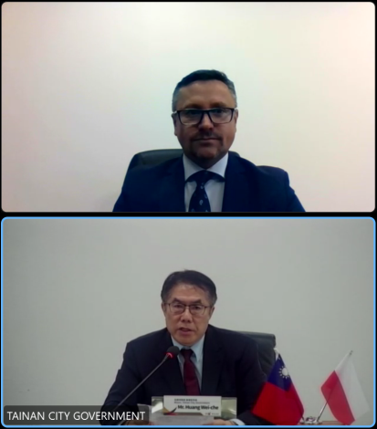 今(21)日台南市長黃偉哲與波蘭盧布林市(Lublin City)的Tomasz Fulara副市長進行視訊會談,雙方就台南市與盧布林市的城市外交進行討論。