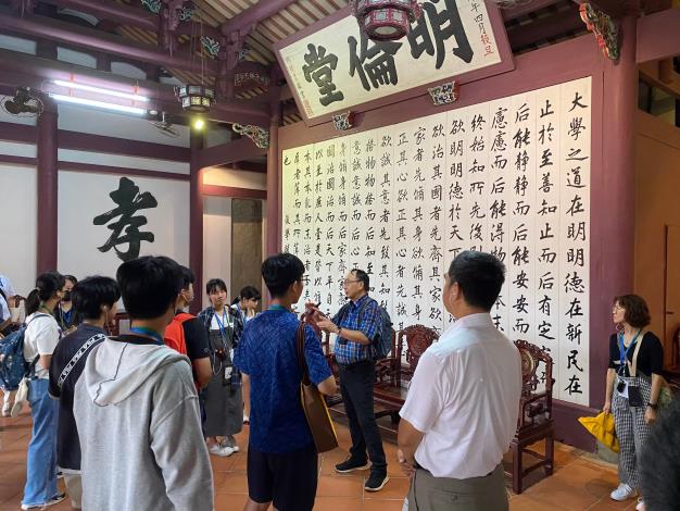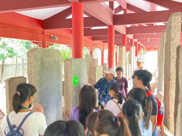 1624年至今,台南在400年間有著豐富的歷史與廉政文化,本次邀請台南市文化資產保護協會曾國棟及林璟璘老師帶領學生們來場廉政與歷史的饗宴,從台南市立博物館開始講解廉政文化典故後,帶領學子沿途參觀碑林、南門城及孔廟名宦祠等廉政史蹟,特別是位於南門城洞壁上所嵌的禁貪碑,鐫刻「農商負販,車牛往來,不許兵役勒索,特示」等禁令,更讓學生了解到古代如何透過石碑告示禁貪,作為官兵與民眾共同遵守政令教化的依據。