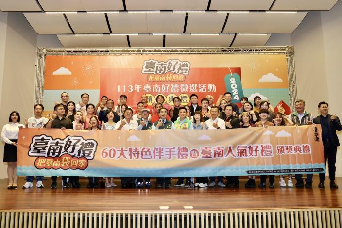 為推廣臺南在地優質伴手禮,臺南市政府辦理「113年臺南好禮徵選活動」,總共計有169 間店家、214件商品報名參賽,而在經過為期三個多月激烈的書面審查及專家評審後,最終評選出「袋好禮」、「袋美食」及「袋文創」等共60件具臺南特色的優質伴手禮。今(22)日市府舉辦頒獎表揚儀式,由市長黃偉哲親自頒發獎牌給所有得獎者,他也期盼透過在地特色伴手禮,讓臺南的觀光產業更上一層樓,並被更多海內外朋友喜愛認識。市議員李啟維也到場共襄盛舉。