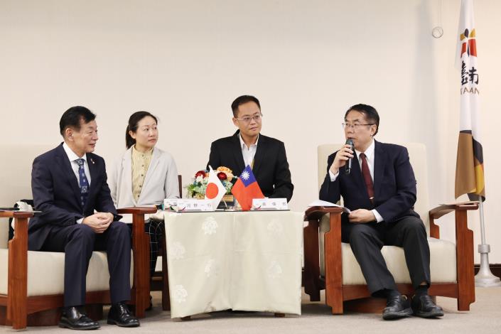 黃偉哲並向外賓說明台南與日本的淵源,像是台南的烏山頭水庫、山上花園水道博物館保存的下水道系統,都是日本人技師所建,裕仁天皇在太子時期所種植的樹及住宿過的地方也被妥善維護。因此非常歡迎日本的朋友,尤其是年輕一代的同學多來造訪,進而了解台南市跟日本的友誼。