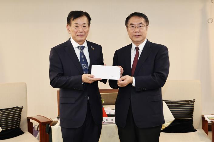 河野一行副市長帶來了藤枝市長北村正平給黃偉哲市長的親筆信,並感謝台南市在「第十屆台日交流高峰會」給予藤枝市議會的熱情接待與安排。表示今年適逢台南400周年,也是藤枝市制施行70周年紀念,2024年對於兩市來說都格外具有意義,是邁向光明未來的重要一年。也期盼兩市能夠攜手發展與成長,持續推動未來的交流。