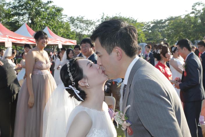 今日聯合婚禮活動安排以幸福演奏開場,在新人進場前,由民政局姜淋煌局長化身幸福領航員,帶領新人一同放飛氣球,象徵甜蜜人生正式啟航,婚禮樂團以幸福的音樂引領長官貴賓進場,而後銜接隆重的新人進場儀式,接受現場親友滿滿祝福。