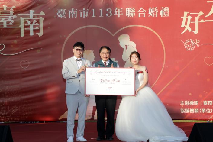 此外,為祝賀新人們幸福成婚,黃偉哲市長更加碼贈送5項超值大禮,獎品包含2萬元禮券、50吋液晶顯示器、變頻冰箱、洗衣機等多達55項實用家電好禮,讓新人們滿載而歸,攜手開啟浪漫幸福的人生旅程。