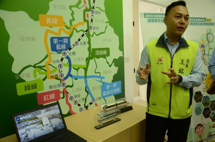 局長王銘德說,台南市未來2年的交通發展施政計畫,先進運輸系統(捷運)是最重要的交通基礎建設,市長黃偉哲將府城、沙崙、南科等三大發展核心一併納入6條捷運優先路網規劃內,第一期藍線、藍延線、紅線、深綠線、綠線及黃線均按部就班的展開規劃作業,其中,進度最快的第一期藍線以115年動工為目標,施工期預計6年,台南市首條捷運可望在121年營運通車;第一期藍線延伸線(114年可研核定、115年綜規案核定)、深綠線(114年可研案提報中央審議)、紅線(113年可研案提報中央審議)、綠線(113年可研案修正作業)持續推動,爭取中央核定,進入設計階段,藉由捷運建設的推動,未來以捷運及台鐵等軌道運輸為骨幹,市區客運、小黃公車及公共自行車為輔,形成優質便捷的公共運輸系統,滿足市民朋友通勤通學、觀光及休閒、商業、醫療等需求,且可望解決台南交通長期擁擠的問題,提升台南市的競爭力。