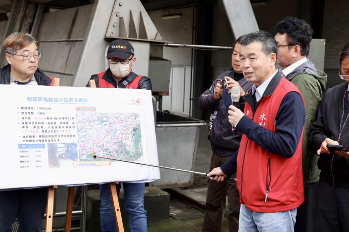 黃偉哲表示,南興抽水站在機組設備完成更換之前,仍有3台抽水機可投入使用,可達15cms抽排量,市民朋友皆可放心。