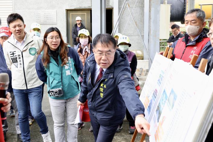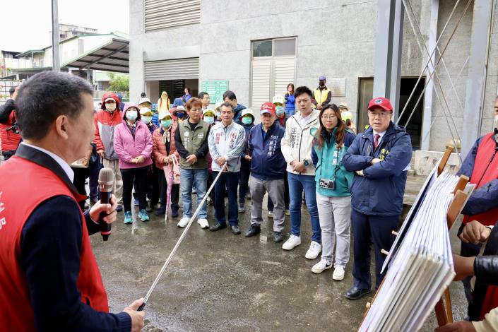 今日南興抽水站視察行程,包括市議員蔡育輝、沈家鳳及王宣貿皆到場關心。