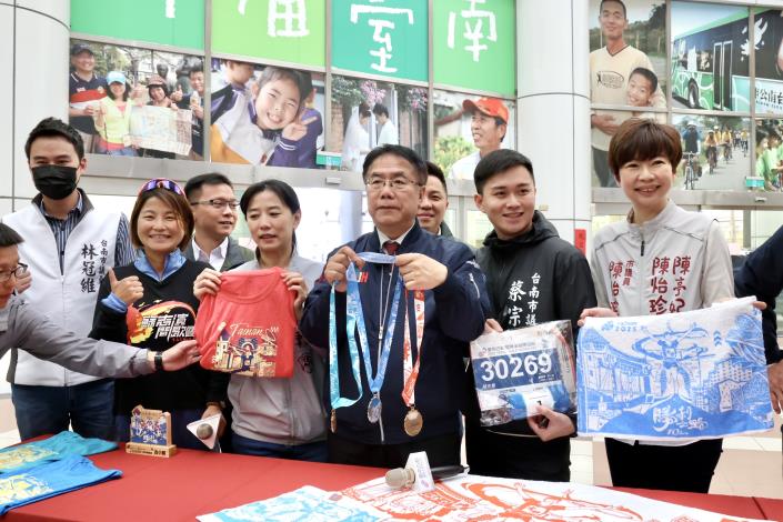 南臺灣最具盛名與人氣的臺南古都國際半程馬拉松將於3月2日上午5時30分正式起跑,將有2萬4105名跑者齊聚臺南,其中包含44個國家,共498名外籍選手一同參與。市府今(26)日於永華市政中心舉辦記者會,現場除準備龍蝦、烤雞、豬腳、蜂蜜滷味等多樣特色美食小吃,更開來一輛現做蝦餅冰淇淋的餐車。市長黃偉哲強調,臺南以美食聞名,因此會用最美味、最豪華的臺南小吃為選手應援,期盼跑者齊聚臺南,不僅跑出健康,還要跑出快樂的回憶。