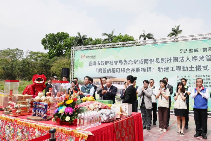 為完善台南市長照資源布建,台南市政府積極向衛生福利部申請補助經費,規劃於六甲區設置綜合長照機構,並於今(21)日舉行動土儀式,台南市長黃偉哲偕同總統府資政張博雅、市議員陳秋宏、尤榮智、吳通龍,及六甲區多位里長與市府委託興建及營運之聖威南悅長照社團法人代表及其協力廠商等共同參與,期盼為地方建立完善長照服務,造福六甲區及鄰近區域長者。