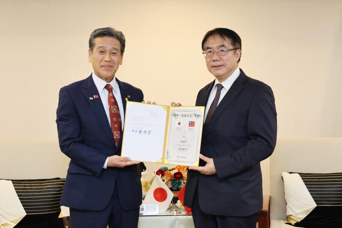 黃偉哲致詞表示,那珂市與台南市起初因飛虎將軍廟結緣,進而促成兩市結為友誼市,希望透過雙方教育、文化、物產等交流,將台日情誼傳承到下一代,並進一步說明,台南市擁有豐富的歷史文化,非常適合日本學生來教育旅行,了解台日之間的歷史及情誼,包括飛虎將軍廟、臺南知事官邸等,都與日本淵源深厚。