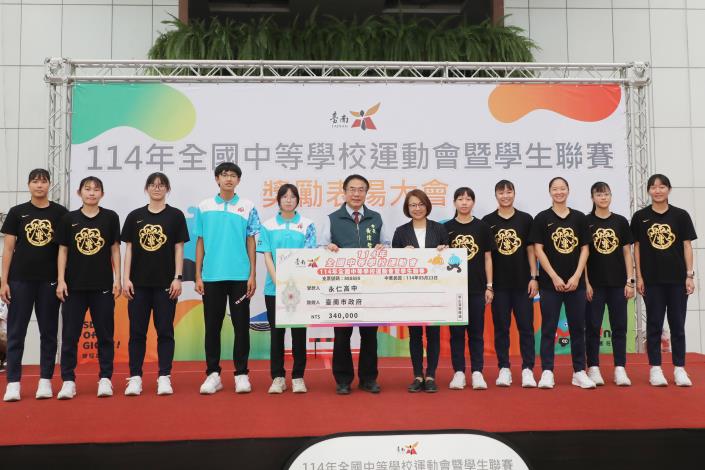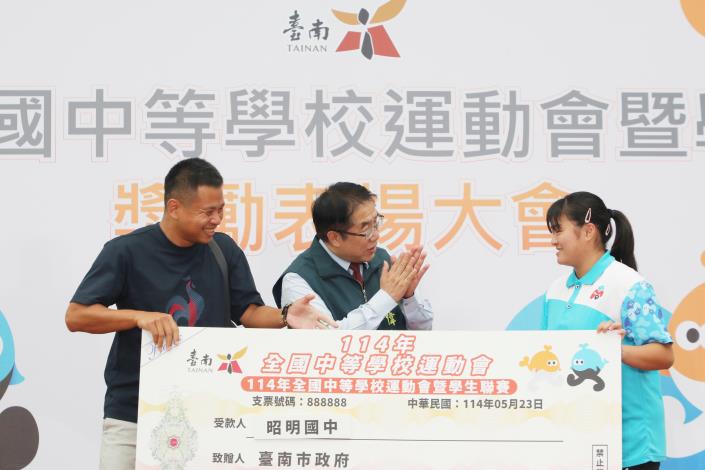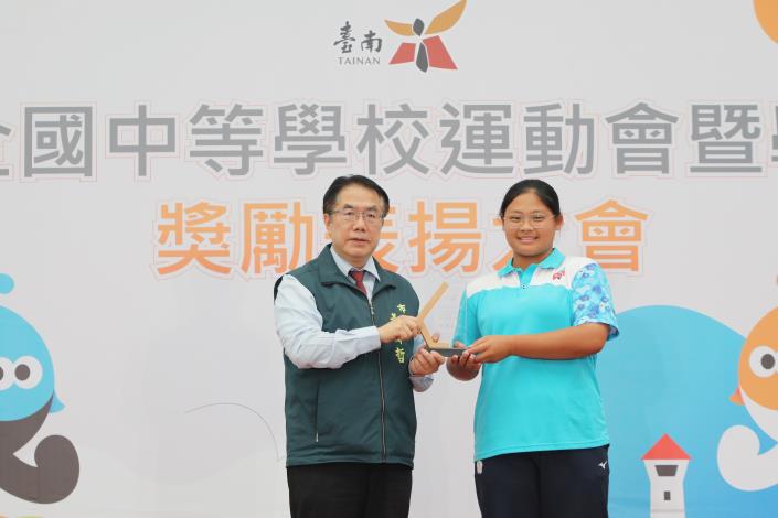 黃偉哲表示,今年全中運成績斐然,是歷年來最多金牌數及獎牌數的一屆,除了頒發前三名獎勵金外,為展現市府支持選手的決心,每月還補助破紀錄及前三名選手訓練津貼,激勵選手之餘,也補充訓練所需耗材及營養補給,全方位照顧選手的身心需求,由市府做每位小將最堅強的後盾。同時也會透過與基層教練的互動及溝通,研擬規劃更加完善的選手照顧計畫!