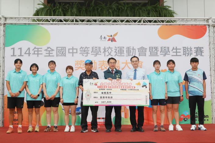 114年全國中等學校運動會在台南圓滿落幕,地主隊小將們十分爭氣,交出超狂成績單!本屆賽事總計獲得48面金牌、42面銀牌及63面銅牌,總計153面獎牌的佳績,破大會紀錄計5項9人次,其中在軟式網球、游泳雙雙摘下10金,後壁國中女團更是六連霸,表現亮眼!今(23)日台南市長黃偉哲親自主持表揚大會,向所有選手及教練團隊表達肯定與感謝。