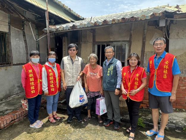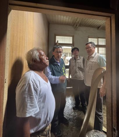 陳主委並與區公所主秘及社會課長分赴低收入戶及獨居老人處,探訪災後狀況,除致贈民生物資外並轉達市長慰問之意。訪視對象之房舍多數皆已遭狂風吹掀,又逢連日大雨,造成許多不便。區公所已提供帆布加蓋,並備有安置處所。惟老人家都習於日常居所,不願移置,對公所與里長之善意多予婉謝。訪視途中也見到里長與許多公益團體逐戶勘查,提供各項協助,帶給災區民眾無限的溫暖。