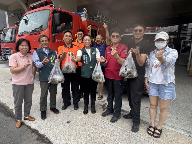 臺南市客委會主委陳新裕今日即代表市長至柳營區,慰問獨居老人及低收入戶。至柳營區公所就遇到沈家鳳議員,原來是嫁到臺南市區的柳營在地人士從市區載來的500顆燒肉粽,由沈議員陪同分送至區公所、警察局與消防隊,給所有的辛苦同仁。不論是在地女兒的溫暖用心,或是沈家鳳議員不顧自己家和服務處屋頂被吹掀漏水待修,凡事以災區民眾優先考量的用心並付諸行動,都令人感動。