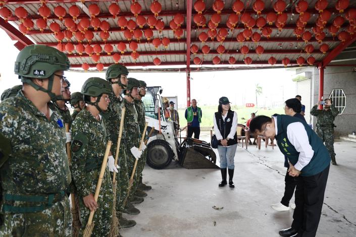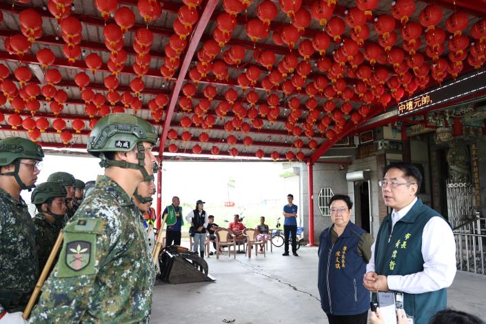 針對現場參與救災的國軍與義消人員,黃偉哲也親自表達感謝。他表示,災區工作刻不容緩,災民當前仍需各界持續關注與支援,市府與區公所將全力投入各項重建工作,再次感謝各縣市政府的大力協助。