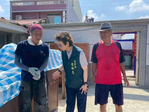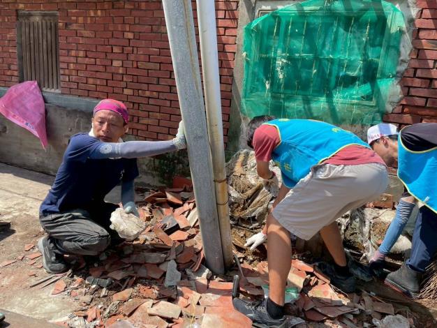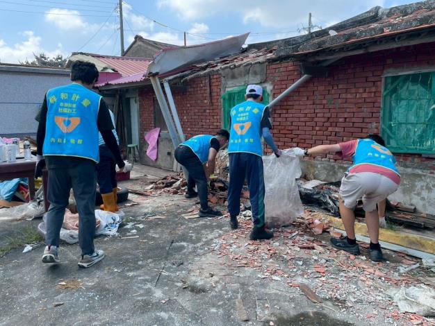 因應丹娜絲颱風侵襲,造成台南溪北地區多處災情,台南市政府社會局迅速啟動災後救援志工媒合機制,號召熱心志工投入家園復原、清理等工作。今(18)日社會局媒合11位志工前往七股區頂山社區,協助受損嚴重的老舊傳統民宅進行清理。台南市副市長趙卿惠與社會局長郭乃文都親自前往慰問,向志工夥伴表達誠摯感謝。