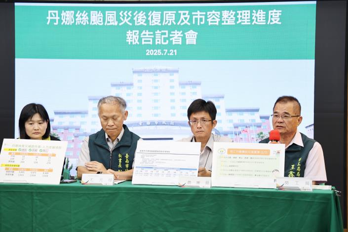 針對丹娜絲颱風帶來的災情,台南市政府今(21)日上午召開記者會,由祕書長尤天厚代表市長黃偉哲說明後續復原與補助進度,並感謝各界對台南救災工作的關心。針對災民反映仍有部分災區電信服務訊號不穩或無法使用,尤天厚指出,電信管理、網路治理屬中央權管,市府已請交通局向中央反映,協助災民儘速修復通訊。此外,市府消保官也會要求中華電信、遠傳、台灣大哥大等3家電信公司趕快落實必要的服務,保障消費者權益。
