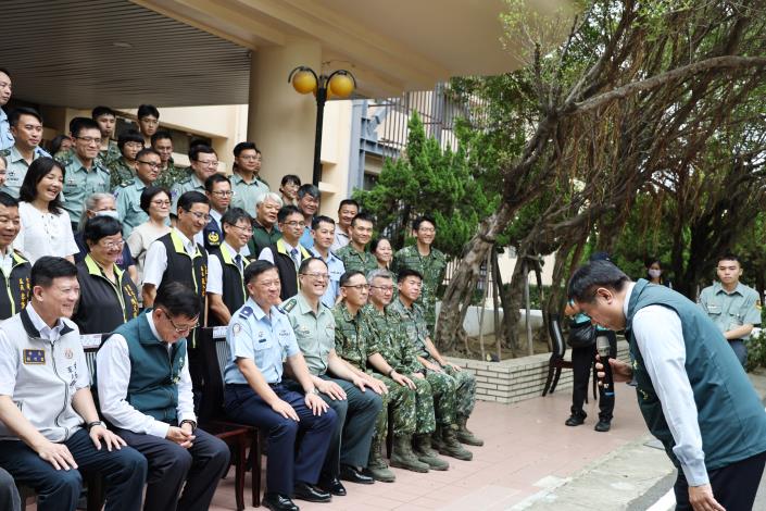 今日包括台南市後備指揮部指揮官林嘉申上校、空軍第一聯隊長廖伯文少將、台南市軍人服務站站長劉可雲,民政局局長姜淋煌、北區區長潘寶淑、七股區長李佳隆、將軍區長張介軍、北門區長林建男、後壁區長李至彬、鹽水區長陳文琪,以及市議員陳怡珍等人皆到場,表達對國軍的關懷與敬意。