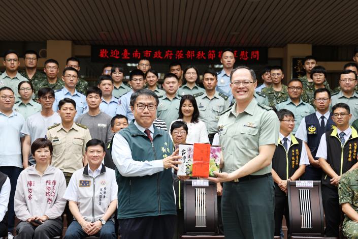 黃偉哲進一步表示,中秋象徵團圓,但國軍仍堅守崗位、默默奉獻,令人敬佩。台南市自去年起推動「敬軍月」,並逐年擴大規模,邀請在地商家響應優惠措施,以實際行動表達市民對國軍的敬意與支持。未來市府也將持續配合中央政策,強化城市韌性與地方防災能量,成為國軍最堅實的後盾。
