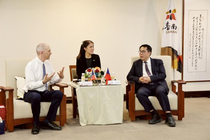 Jeremy Slagoski主席此行代表盧卡斯市長與姊妹市協會向黃市長致意,他表示,台南市是堪薩斯市早期締結且持續活躍的姊妹市之一,期待與台灣人社群攜手推進兩市關係。Slagoski主席身兼密蘇里大學堪薩斯分校(UMKC)人文社會科學院的助理院長,此次也拜訪國立台南大學,他認為雙方在教育領域的合作潛力甚鉅,盼為城市交流再添新頁。