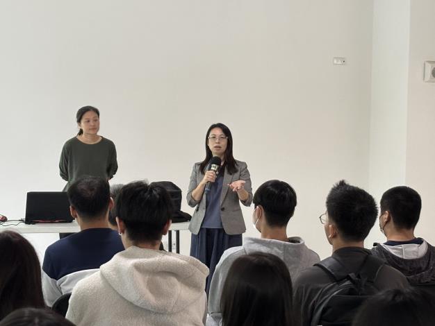 活動開始由研考會陳仲杰副主任委員代表致詞,歡迎長榮大學師生走進市府宜居政策第一線。都市發展局都市住宅科陳心怡科長隨後以「臺南市社會住宅辦理情形」為題進行專題簡報,從「社會住宅只租不售」的核心精神切入,依序介紹租金分級、弱勢戶保障比率、通用與無障礙設計等制度規劃,協助學生快速掌握居住政策的全貌,目前臺南市社宅已完工1184戶、興建中7,982戶,包含規劃中已達12,045戶。