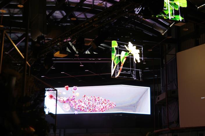 此外,「花海史事」展區透過沉浸式影像回顧自1960年代以來台灣切花產業的發展歷程,讓花卉產業的歷史記憶在數位科技中重新被看見;「幻象浮鯨」展區則利用3D透視技術打造巨大浮鯨裝置,與遊客近距離互動,並透過數位占卜花與真實花香交織,帶來象徵祝福與希望的沉浸式體驗。