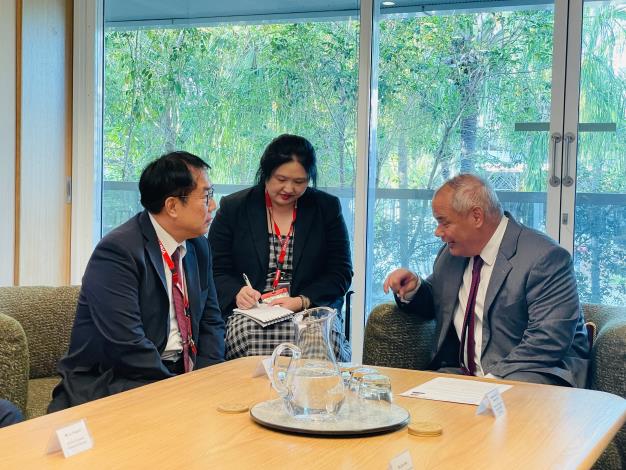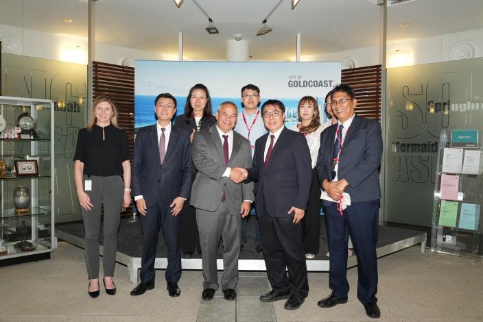 黃偉哲市長首度率團出訪澳洲,5日抵澳即前往昆士蘭州的黃金海岸市拜會姐妹市泰特市長(Tom Tate),其國際事務關係顧問麥特卡夫主任(Katrina Metcalfe)陪同出席。兩位市長甫於今年5月於台南見面,再次相見如同老友般氣氛格外親切。雙方於會議中就兩市的城市特色、球賽運動、旅遊推廣等方面進行交流,熱情互動具體加溫兩市姊妹市情誼。