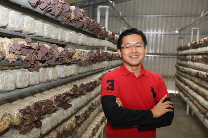 官田區新農人黃智宏原在軍中服務,退伍後在就讀崑山科技大學環境工程研究鎖期間,開啟了農業綠能和環控設施的興趣,106年開始投入辦環控的黑木耳栽培,如今未滿兩年,就已經南征北討各種展場活動,除了綠能環保的生鮮木耳,還開發出乾木耳、黑木耳露、黑木耳黃金泡菜等產品,農業創業的步伐十分迅速而穩健。