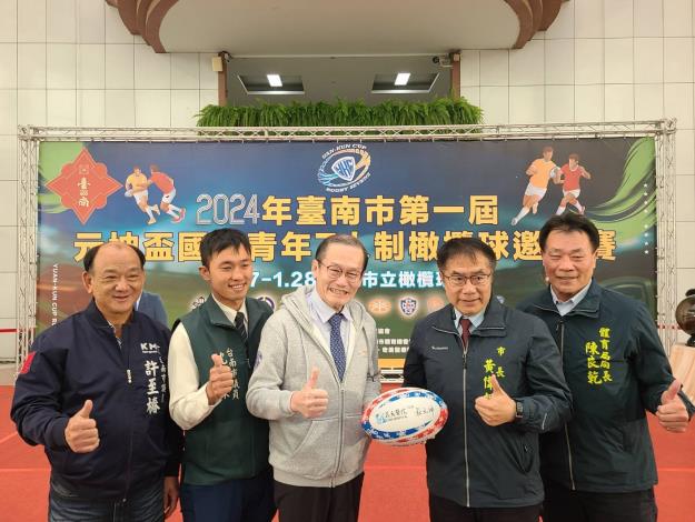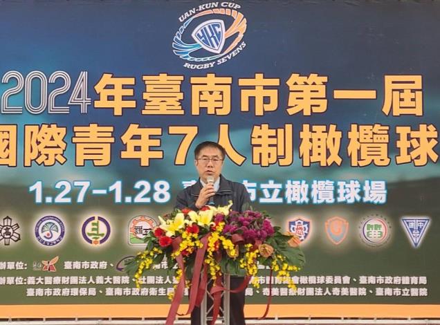 2024年臺南市第一屆元坤盃國際青年七人制橄欖球邀請賽將於1月27、28日在臺南市立橄欖球場熱血開賽,市長黃偉哲於記者會上特別感謝長期支持基層橄欖球運動的杜元坤理事長,為了響應2024臺南400,回到故鄉臺南舉辦元坤盃國際青年賽。黃偉哲市長熱情邀請全國朋友一同齊聚臺南,共同為選手加油打氣。