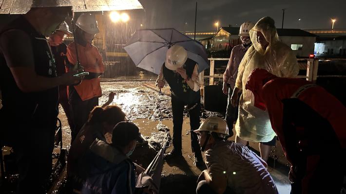 陳淑美局長表示喜樹灣裡市地重劃工程施工團隊施工期間務必隨時注意汛期間強降雨及預防措施,排水箱涵務必順暢,避免後續有類似情況發生,造成地方居民困擾及損失,已責請施工廠商逐戶調查,確認有無災損狀況,若有造成居民損失,將追究賠償責任。