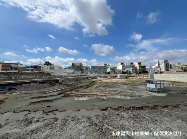 不僅如此,已完工的麻豆工業區兩座滯洪池容納10萬噸蓄水量,九份子重劃區公園兼滯洪池也發揮滯洪和景觀的作用。目前尚在施工中的多個重劃區滯洪池也提早發揮功能,安南區怡中市地重劃區滯洪量9,053噸,永康區的崑大路市地重劃區滯洪量6,205噸,六甲頂醫療重劃市地重劃區滯洪量3,483噸,南科FG區段徵收開發區滯洪量7.5萬噸,位於南區喜樹灣裡市地重劃區滯洪量11,800噸,各開發區責成施工廠商平時確實維護工區及週遭排水系統,於暴雨期間加強工地巡查確保水路通暢無虞,協助將周遭排水引流至開發區內,透過滯洪設施及出流管制作為,緩解區域排水負荷,落實開發與防災並重的理念。