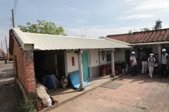 目前西港區已有修繕完成案例,該戶為三合院的古厝,屋頂毀損後先以帆布應急,經地政局協助媒合,住戶與廠商於114年8月13日簽約完成,修繕過程也感受到公部門的積極,廠商儘量縮短工期,在工作滿檔的情況下仍於4天內先將屋頂頂版安裝完成,讓住戶先有遮風避雨的功能,後續封邊包角及螺絲塗裝等收尾工作也於簽約後7日即完工,讓居民能在最短時間內恢復正常生活。另外,區公所同時啟動慰問與急難救助金申請及發放,協助民眾渡過災後重建的難關。