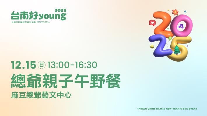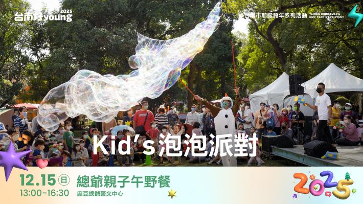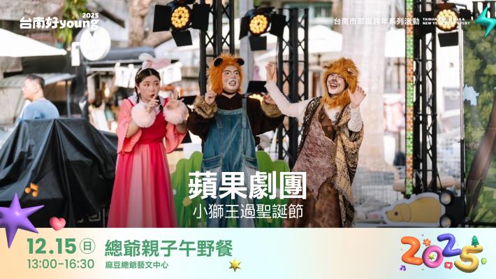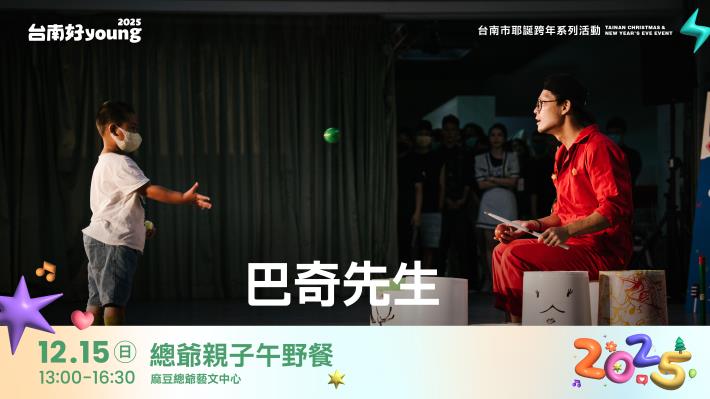 臺南耶誕跨年親子活動12/15下午1:00在麻豆總爺藝文中心有蘋果劇團、巴奇先生打擊樂、Kid's 泡泡派對、限量造型氣球DIY體驗以及熱鬧的闖關活動等,絕對要讓親子共度和煦美妙的午野餐時光!